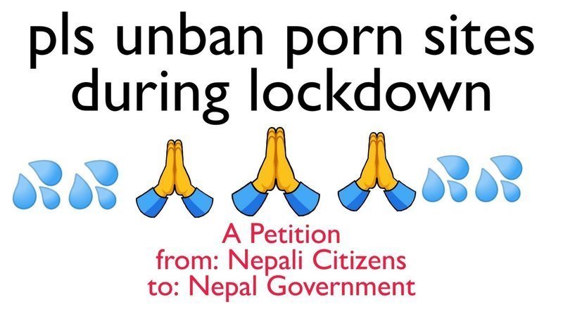 COVID-19 is everywhere. The threat is imminent. We wholeheartedly appreciate the step of Nepal Government towards a total lockdown to contain the spread of the pandemic. But, we all humans need to survive and mating is a natural instinct. With the boredom at home, most of us might probably die before Coronavirus gets us unless something is done. The solution to this is watching Porn. Not only does porn refreshes the mind, it also helps in boosting knowledge. Porn Sites however, have been banned in Nepal for a long time. They are the saviors we deserve and need at this time of crisis. Through this petition, We humbly request the Nepal Government to unban all Porn sites, at least during the time period of lockdown. This will help a lot of people to thrive and survive.Thank You! Jay Nepal!!! #GoCoronaGo