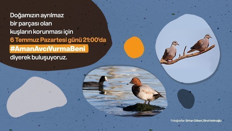 Bugün (6 Temmuz) saat 21:00’da tehlike altında olan kuşlar için #AmanAvcıVurmaBeni hashtagiyle Twitter’da bir araya geliyoruz. İki gün sonra toplanacak olan Merkez Av Komisyonu, maalesef bu yıl da hangi türün ava açılacağına ve ne kadar vurulabileceğine karar vererek binlerce canlının kaderini belirleyecek. Paylaşımlarınızda talebimiz olan, tehlike altında olan kuş türlerinin avının tamamen yasaklanmasını dile getirerek aşağıdaki hesapları etiketlememiz gerekiyor.