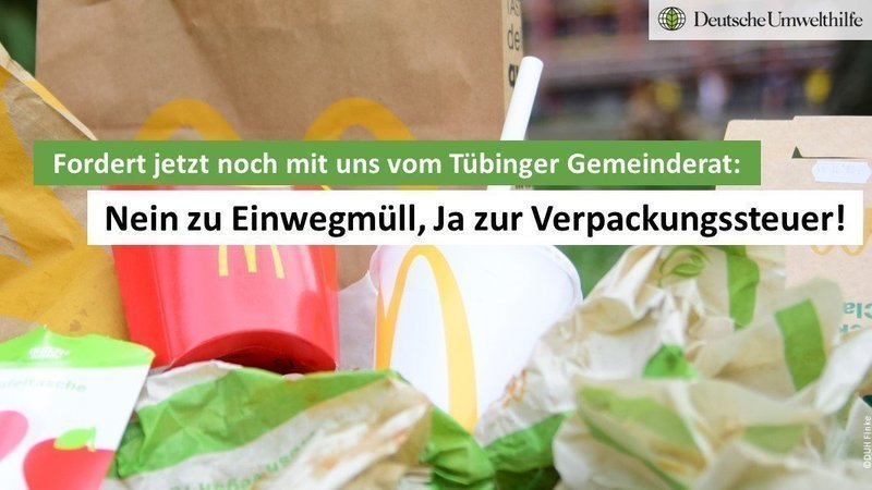 Die Stadt Tübingen hat sich mit der Einführung der Verpackungssteuer mutig gezeigt und wurde zum deutschlandweiten Vorreiter im Kampf gegen die Einwegmüllflut. Diese Bemühungen dürfen jetzt nicht vom Müllriesen McDonald’s und seiner Klage zunichte gemacht werden, bevor das Gericht überhaupt entscheidet. Wir finden: Bis zum endgültigen Urteil muss der Gemeinderat auf der Seite der vielen Gastro-Betriebe stehen, die längst erfolgreich auf Mehrwegsysteme umgestellt haben und denen ohne die Steuer ein ökonomischer Vorteil gegenüber Einwegschmutzfinken wie McDonald’s genommen wird.