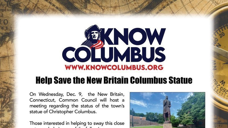 On Wednesday, December 9th at 7:00 PM, the New Britain, CT Common Council will have a FINAL meeting regarding the status of the city's Christopher Columbus statue. It is imperative that you join us in this call-in, especially if you live in the city of New Britain, in order to show support for Columbus.