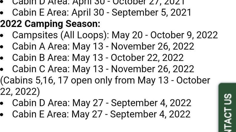 Attached, is a screenshot of the season dates for camping at Letchworth. Information for The Glen Iris Inn and related properties can be found here: https://www.glenirisinn.com/booking/