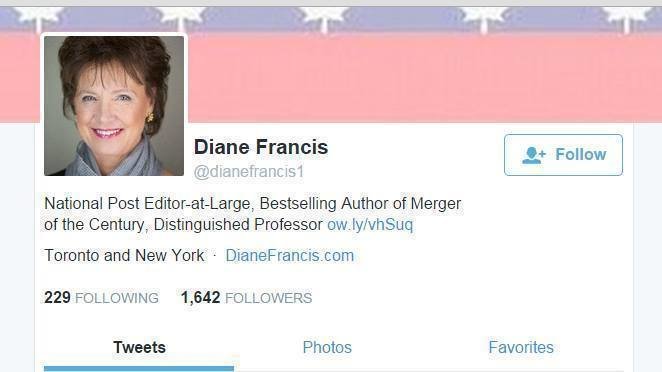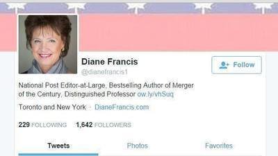 Remove all sponsorship of Diane Francis, her columns, and her book because of bigotry and racism against Greeks.