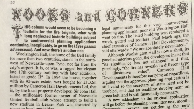 Meanwhile the Chronicle has reported that the Woolsington Hall restoration is ‘progressing well’ and that Cameron Hall Developments Ltd is prospering financially.