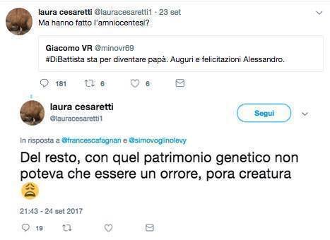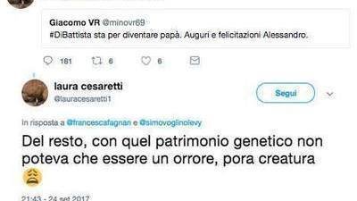 Questa è Laura Cesaretti, giornalista del Giornale ed ex Foglio, che da giorni sta insultando in modo vile e vergognoso una piccola creatura. Per il solo gusto di attaccare Alessandro Di Battista, se la prende con un bambino appena nato.