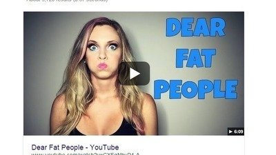 Nicole Arbour's YouTube video "Dear Fat People" is hurtful and not funny. In it, she uses a form of bullying to "help people." She encourages and celebrates fat shaming saying, "If we offend you so much that you lose weight, I’m okay with that." This is extremely dangerous, and a damaging way of speaking to all people, but especially young women and teens. It is the wrong message to send, and Nicole Arbour is doing harm because she has thousands of followers and millions of viewers.