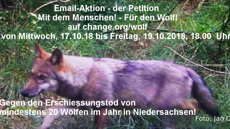 Unsere Petition "Mit dem Menschen! - Für den Wolf!" startet heute eine Emailaktion um den Verantwortlichen zu zeigen, das sie (die Politiker) nicht alles machen können, was sie wollen.