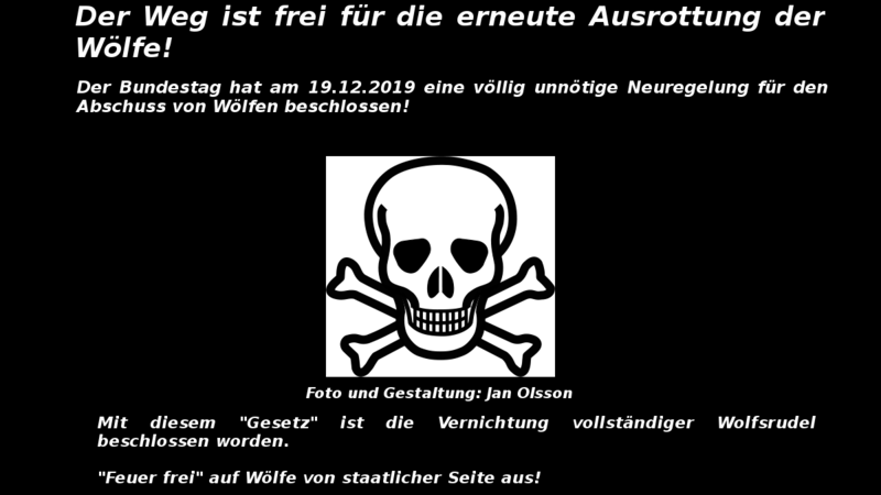 Mit diesem Gesetz wird in naher Zukunft die bundesweite Vernichtung vollständiger Wolfsrudel durchgeführt!