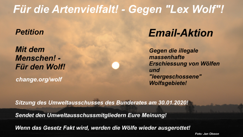 Am 30.01.2020 ist die nächste Sitzung des Umweltausschusses des Bundesrates. Thema ist das vom Bundestag verabschiedete Gesetz „Lex Wolf“.