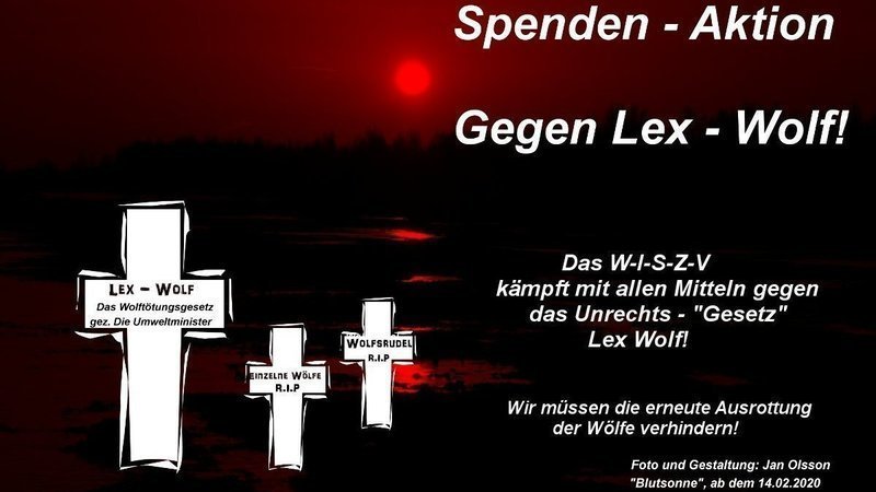 Das W-I-S-Z-V wird seinen hochqualifizierten Anwalt beauftragen, den weiteren Kampf für die Wölfe aufzunehmen! Das können wir aber erst, wenn genug Geld vorhanden ist!