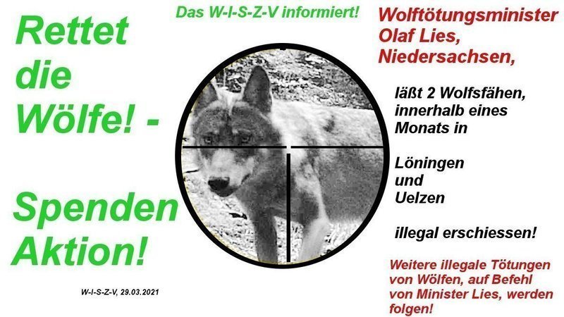 Nun hat er (Minister Olaf Lies, Niedersachsen) es getan! Er hat zwei unschuldige Wolfsfähen erschiessen lassen.