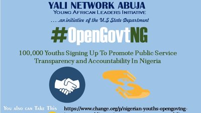 The Young African Leaders Initiative (YALI) Network Abuja seeks to influence greater transparency and accountability in Nigerian public service. To achieve this objective, we have adopted various strategies including a Youth Leader's Conference on Transparency and Accountability in Public Service that will hold later this year and call on 100,000 Nigerians to sign an #OpenGovtNG online petition, committing to accountability and transparency. This is part of the #YALIUnites campaign of the YALI Network.