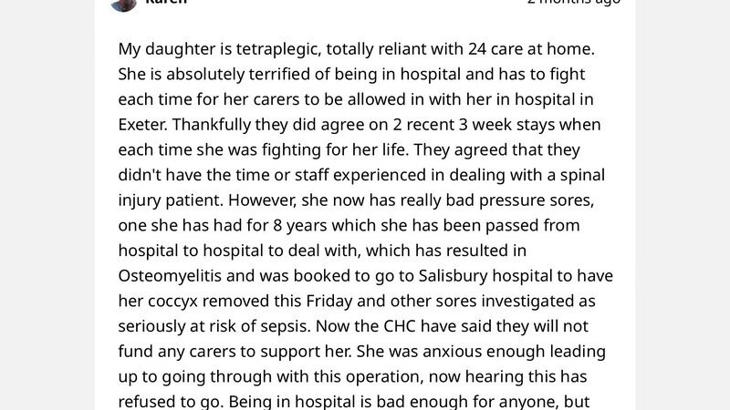 Actualización de la peticiónNina’s Law - Enable Carers to Continue Care Visits for Disabled Patients in HospitalsLooking to reach Karen who posted 2months ago please