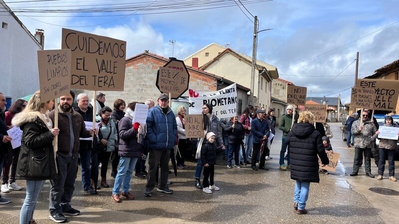 A las puertas del Ayuntamiento de Vega de Tera se desplazaron casi 500 personas procedentes de Junquera, La Milla, Olleros, Villar de Farfón, Calzadilla, Rionegro y otros pueblos de la zona para expresar su rechazo enérgico a la planta de biogás proyectada en Junquera de Tera por la empresa CapWatt.