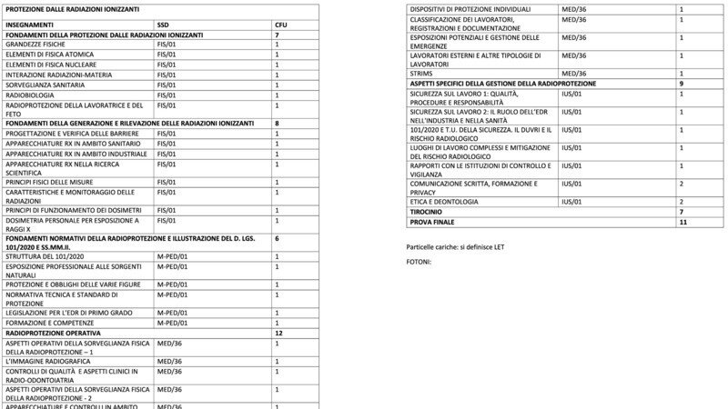 Nell'immagine ho riportato tutto il programma del master PROTEZIONE dalle RADIAZIONI IONIZZANTI presso Univrsità e Campus, master el quale ho concluso i 5 esami (titolo in grassetto nell'immagine ch ho amndato): ogni argomento è ripetuto almeno 2 volte. Faccio alcuni esempi.