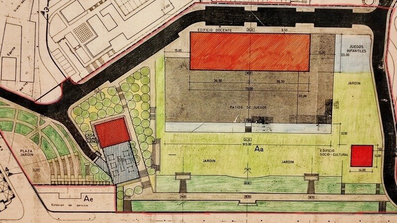 En el plano se detallan las medidas de los ámbitos, señalando claramente los del centro educativo. Se intenta así, compensar los deficits verdes de Gros, y una intención, para intentar equilibrar así la ciudad. Con esta imagen, termina, el primer ciclo de antiguas alternativas.