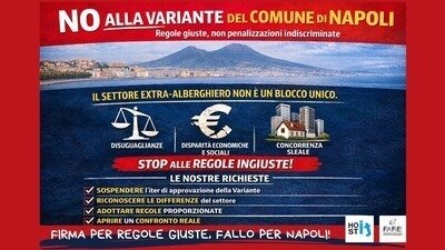 Il Comune di Napoli propone una variante urbanistica che limita fortemente il settore extralberghiero e gli affitti brevi, senza distinguere tra realtà profondamente diverse. Questo approccio è ingiusto e rischioso: rischia di colpire chi lavora onestamente e chi ha investito con i propri sacrifici.