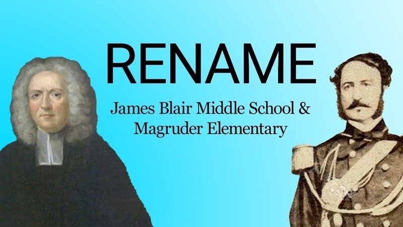 Please join us in demanding that James Blair Middle and Magruder Elementary be renamed! Community opposition to these school names has been on the rise over the past few years and this year they were the subject of a panel at the Lemon Project Symposium at the College of William & Mary. The NAACP recently sued the Shenandoah County school board for restoring Confederate names to its schools. Let's ensure the Williamsburg community is on the right side of history! No child should have to attend a school named after an enslaver!