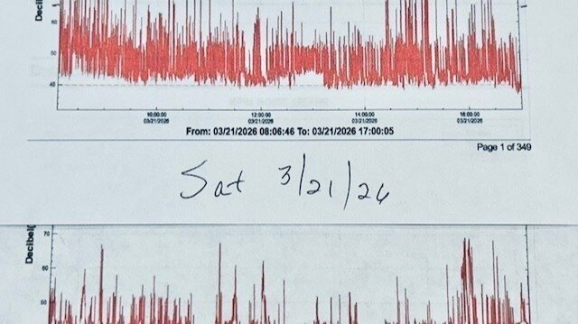 **Saturday, March 21, 2026** (from ~8:06 AM to 5:00 PM): Constant spikes up to 80+ dB, with frequent peaks in the 70s. This was a very active day with heavy flight school operations – loud, persistent, and disruptive.