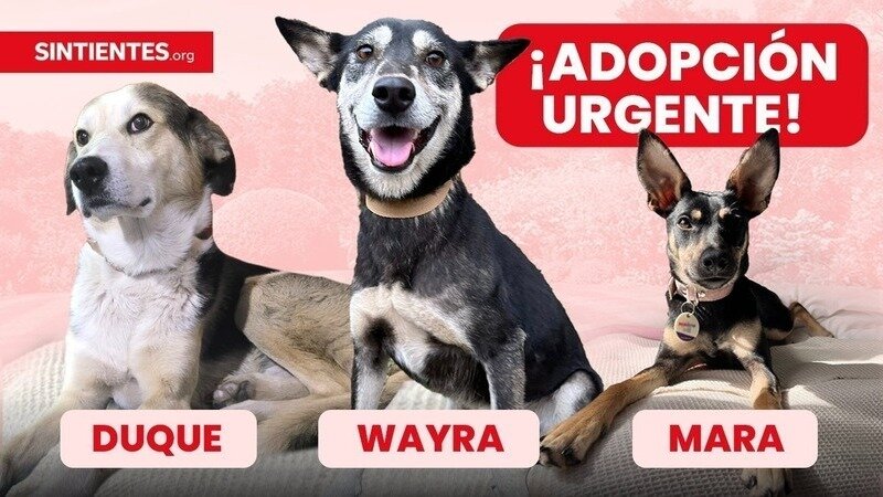 Se buscan adoptantes responsables para 3 perros rescatados de una grave situación de maltrato animal, quienes fueron víctimas de un acumulador de animales.