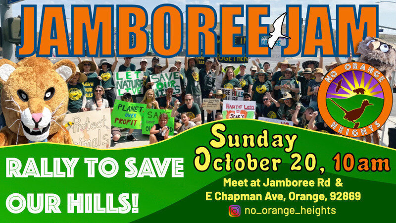 The Jamboree Jam! — A MAJOR peaceful rally to save our hills! Featuring a protest demonstration, march, live music jam and a letter writing activity (templates, postage & envelopes provided).