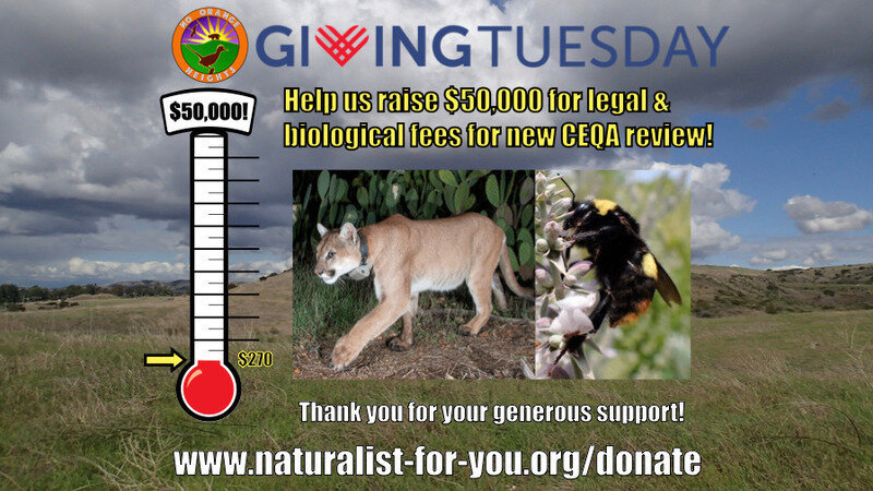 Giving Tuesday is December 3rd. Help us raise $50,000 for the administrative phase of this project, which would be used to prepare comments on the new CA Environmental Quality Act (CEQA) review we’re anticipating from CA Dept of Fish & Wildlife (CDFW), to hire consultants, etc. Depending on the final cost of the CEQA review, remaining amount could be used for litigation. #GivingTuesday