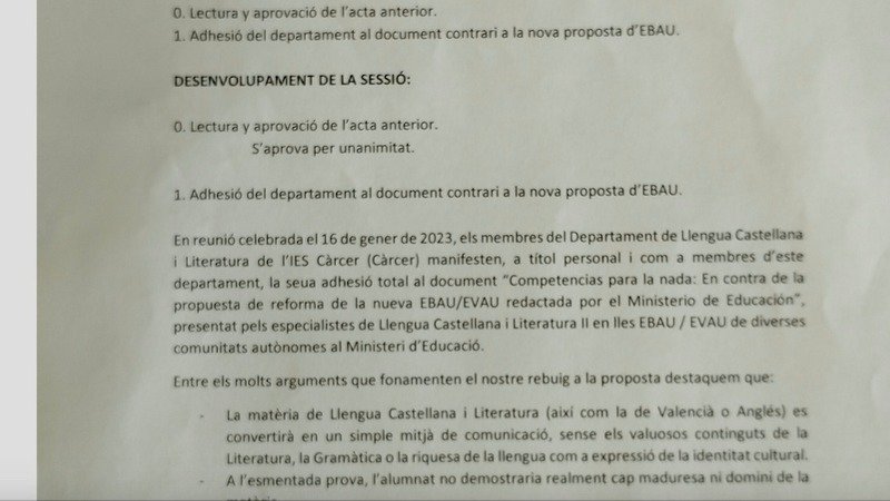 Los departamentos de Lengua Castellana y Literatura de los IES Carcer y Carles Salvador se unen a nuestra protesta.
