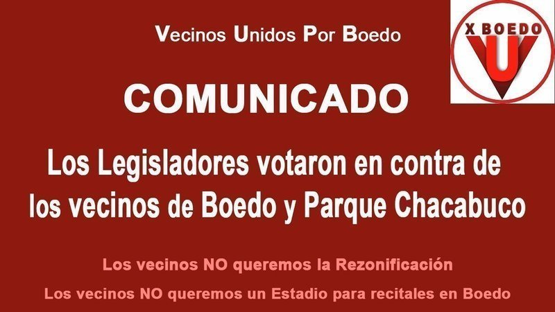 Somos vecinos que nos oponemos a la construcción de un enorme estadio multifunción en el predio de Av. La Plata al 1700. Muchos de esos vecinos estamos reunidos en una agrupación a la que denominamos "Vecinos Unidos por Boedo" y, desde hace ya mucho tiempo, pedimos ser escuchados por las autoridades con poder de decisión del club San Lorenzo, por los Legisladores de la Ciudad de Buenos Aires, entre otros funcionarios.