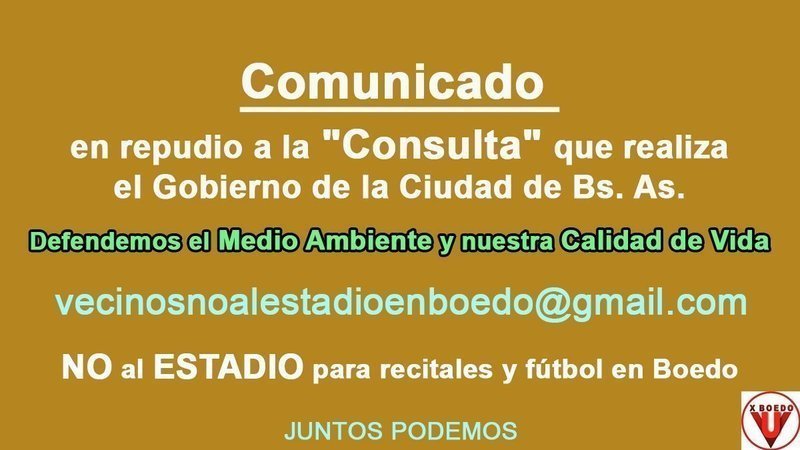 Vecinos Unidos Por Boedo repudiamos terminantemente la "Consulta" que está llevando a cabo el Gobierno de la Ciudad de Buenos Aires con respecto al Proyecto de Rezonificación en Boedo que fue aprobado por los Legisladores en primera lectura.