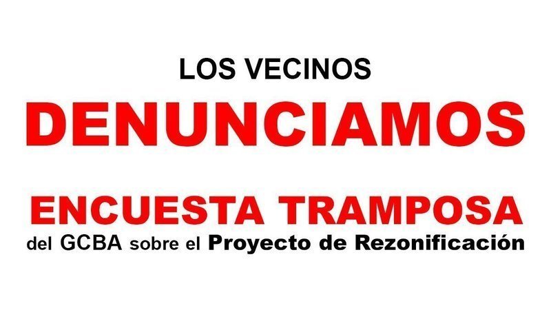 Los vecinos denunciamos la "Encuesta tramposa sobre la Ley de Rezonificación en Boedo" y pedimos su inmediata anulación