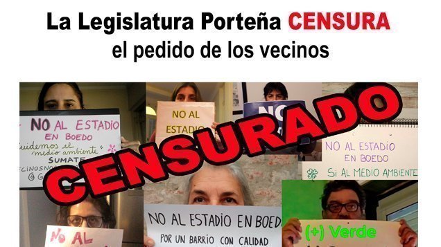 Los Vecinos Unidos Por Boedo denunciamos haber sufrido un acto de censura a nuestra participación ciudadana de parte de la Legislatura porteña durante la Reunión de Comisión conjunta entre Planeamiento y Presupuesto, celebrada en el día de la fecha a las 11:30 hs para el tratamiento de dos expedientes: