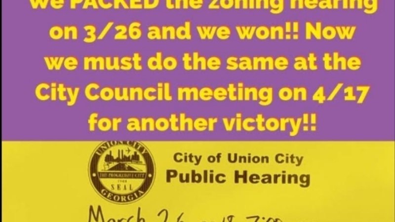 Tuesday, April 17, 2018 at 7pm (get there early to make a public comment) Union City - City Hall Council Chambers - 5047 Union St, Union City, GA 30291.