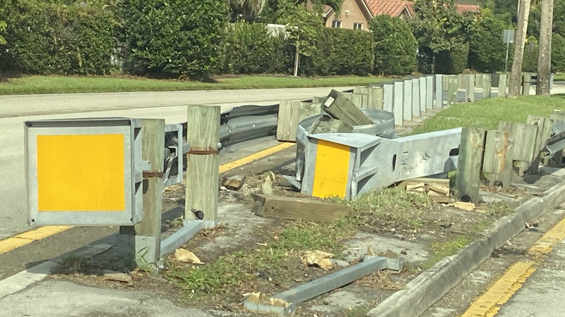 On 3/1/22 this exact guard rail was hit the same side and everything. Well, here we are months later and after half of those months were with the rubble from the first crash. The new guard rail! Well, what was a new one until 5am today (12/16/22). Welcome to a free for all road brought to you by Plantation Police! Are you speeding? Because we are not watching!
