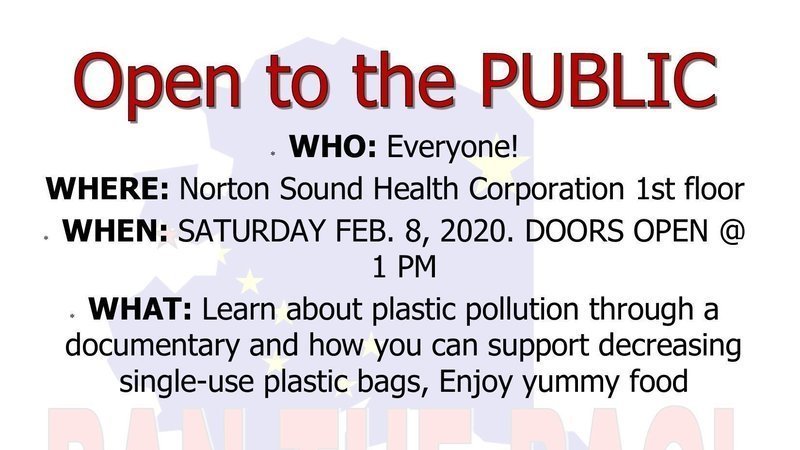 If you're in Nome on Saturday Feb. 8th at 1 pm, come to the hospital's first floor for some open discussion on plastic pollution, food, 23 minute plastic pollution documentary and a free reusable grocery tote !