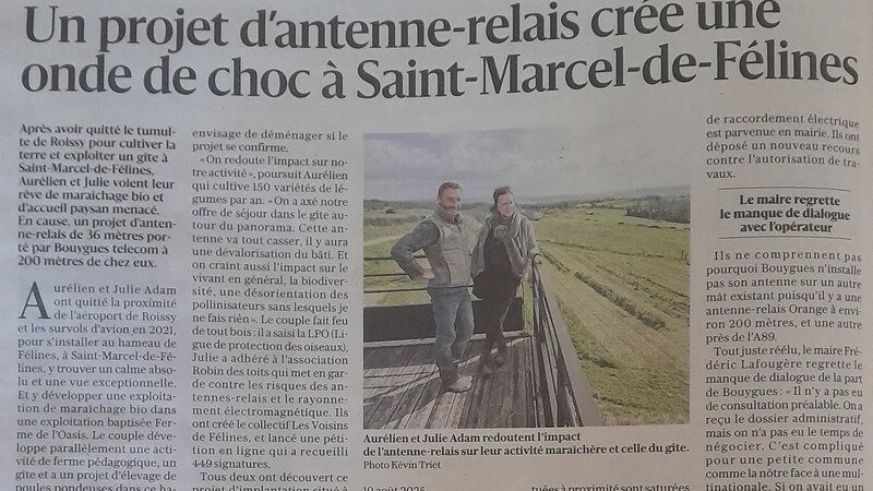 Petition updateNON à l'antenne 5 G à St Marcel de Félines !Article paru dans Le Progrès hier, vendredi 20 mars.
