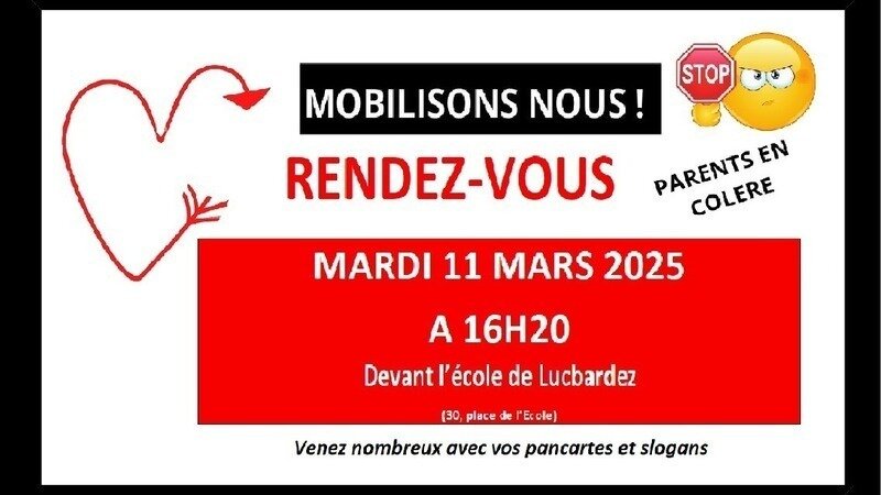 Mobilisons nous, et montrons notre détermination CONTRE le projet de fermeture d'une classe de l'école primaire au sein de notre RPI Lucbardez-Saint Avit à la rentrée 2025/2026.