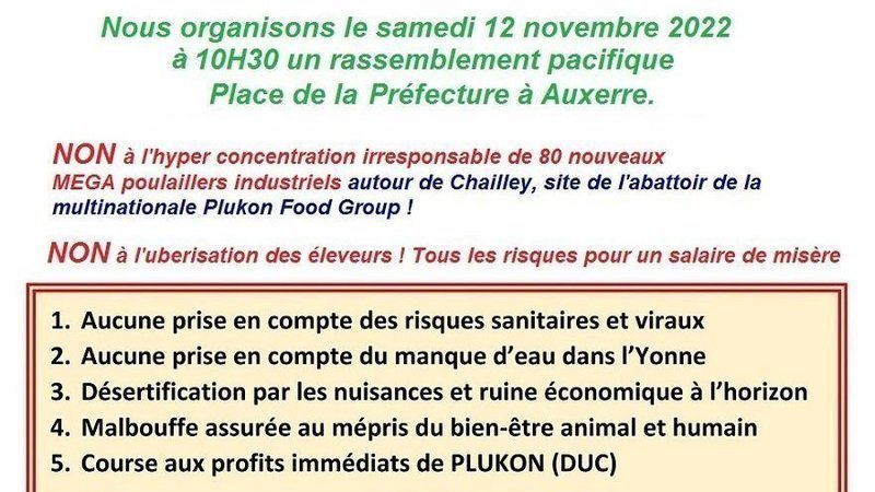 - Lien Cyberaction : Non au projet d'extension de l'abattoir de volailles industrielles à Chailley https://www.cyberacteurs.org/cyberactions/nonauprojetdextensiondelabattoirdev-5733.html