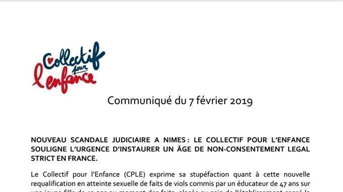 Cette affaire, comme depuis octobre dernier celles de Versailles, Roubaix, Compiègne, Rodez, et certainement beaucoup d’autres non-médiatisées, démontre quel les requalifications en atteinte sexuelle se succèdent et que, contrairement aux annonces du gouvernement, la loi du 3 août 2018 n’a en rien résolu la tolérance envers la criminalité sur les enfants.