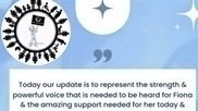 Today our update is to represent the strength & powerful voice that is needed to be heard for Fiona & the amazing support needed for her today & within all our communities.
