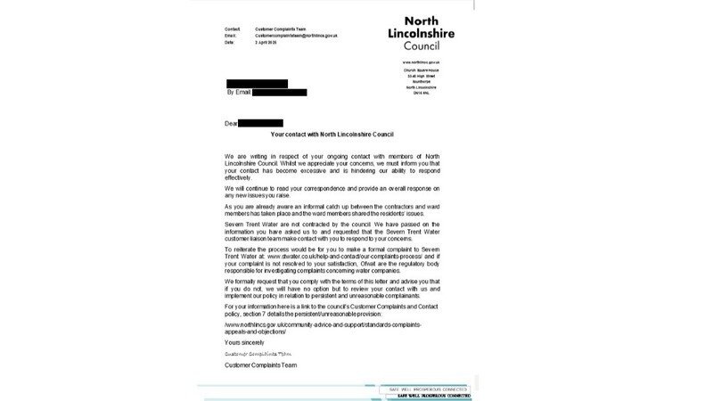 On 2 April 2025, North Lincolnshire Council sent a letter to a local resident warning that future contact could be restricted under its “persistent and unreasonable complainants” policy. However, the letter fails to explain: