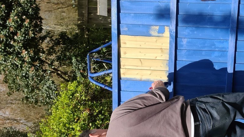 We've had our new fence panels delivered, today was spent painting the garden side blue.