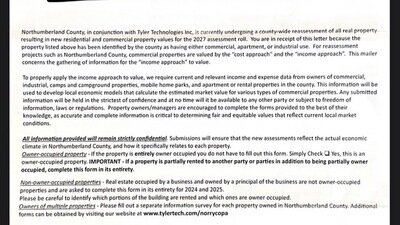We, the undersigned business owners, property owners, and residents of Northumberland County, respectfully express our concern and opposition to the county’s approach to assessing rental and non-owner-occupied properties as part of the current reassessment process.