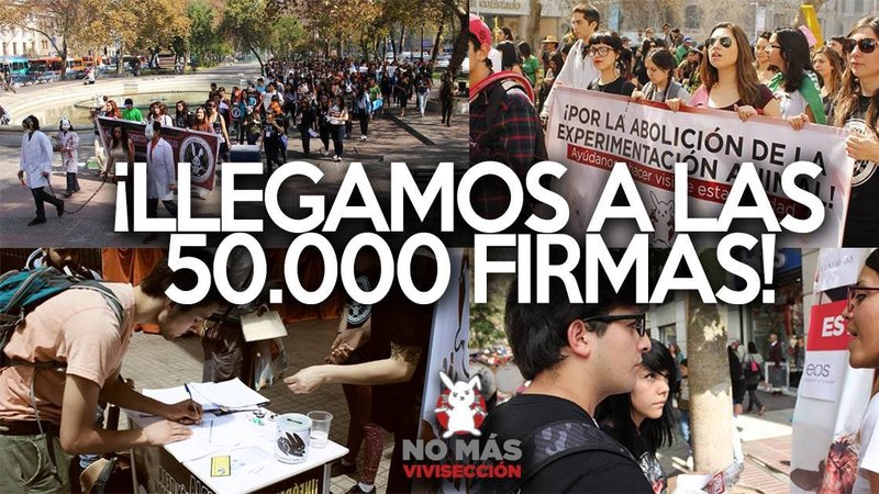 Neuigkeit zur PetitionProhíban las pruebas en animales para cosméticos en ChileALCANZAMOS LAS 50.000 FIRMAS!!!