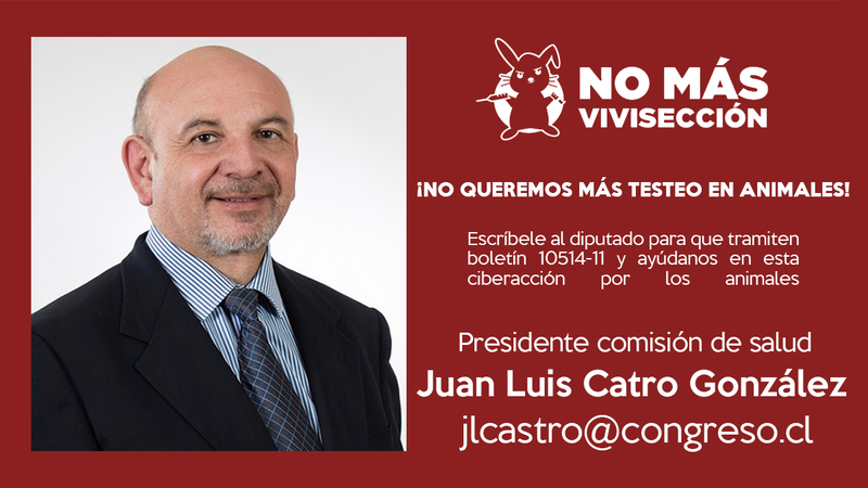 Ayúdanos a hacer presión a los miembros de la Comisión de salud mediante una carta solicitando que se tramite el proyecto de ley (boletín 10.514-11) que prohíbe el testeo en animales para cosméticos.
