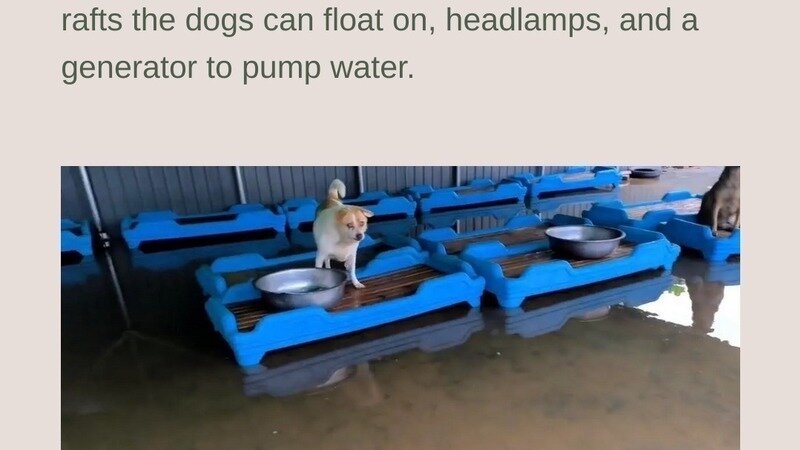 Bislang haben wir Rettungsboote, behelfsmäßige Flöße, auf denen die Hunde schwimmen können, Stirnlampen und einen Generator zum Pumpen von Wasser gekauft.