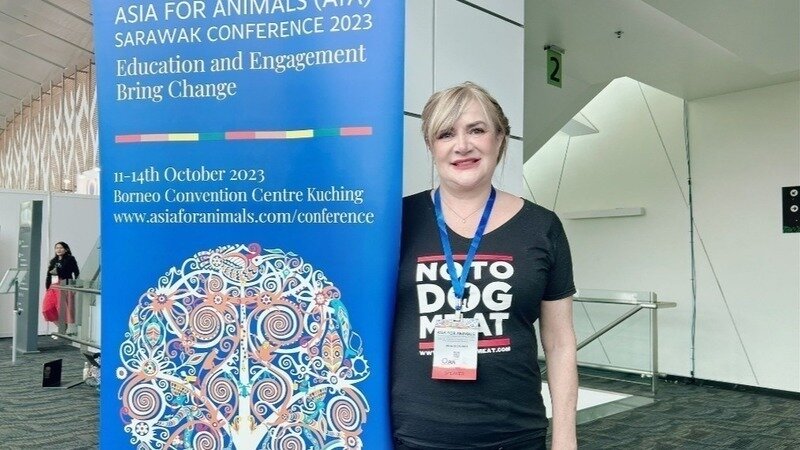 Diese Woche bin ich in Borneo und spreche auf der Konferenz von Animals For Asia über die Arbeit der von mir gegründeten Wohltätigkeitsorganisation World Protection for Dogs and Cats in the Meat Trade (NoToDogMeat).
