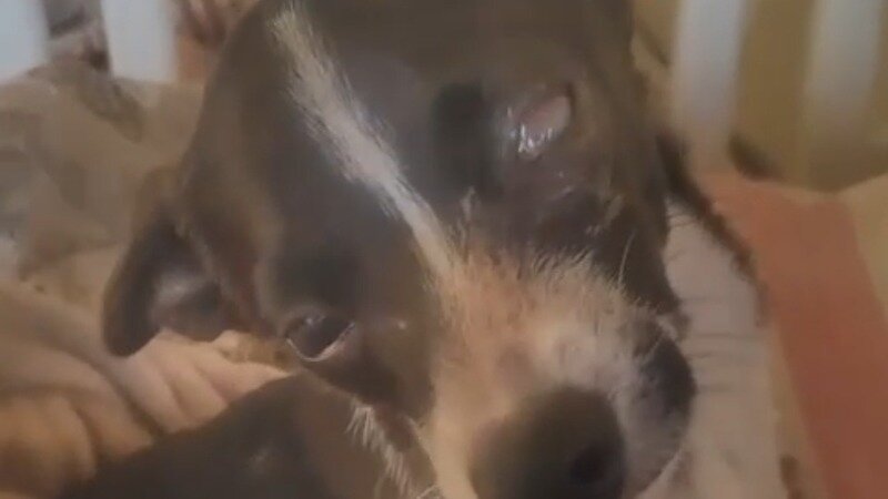 Einer unserer Rettungen gerade geheilt von der Staupe- jetzt droht ihm die Erblindung....