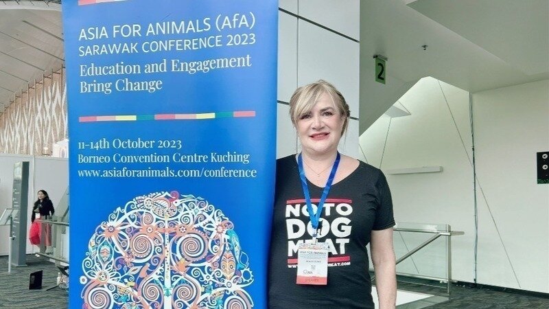 Diese Woche bin ich in Borneo und spreche auf der Konferenz von Animals For Asia über die Arbeit der von mir gegründeten Wohltätigkeitsorganisation World Protection for Dogs and Cats in the Meat Trade (NoToDogMeat).
