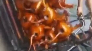 Wie diese Hunde transportiert werden vom Hundefleischmarkt ab zum heimischen Kochtopf.....Ich könnte jetzt im Strahl erbrechen.....sorry