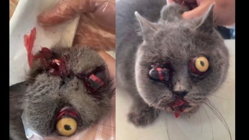 Eine Katze die gefoltert wurde und die von uns vom "BUTCHER"gerettet werden konnte .