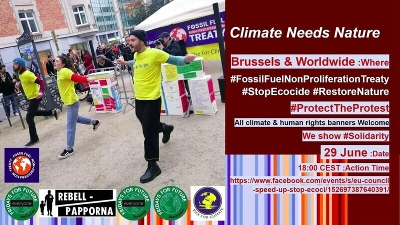 Le jeudi 29 juin 18h à Bruxelles-Schuman , nous organisons un nouveau rassemblement lors du Conseil Européen des chefs d'états à la veille d'un été où les records de température risquent encore d'aggraver la catastrophe climatique en Europe ( inondations en Italie, sécheresses en Espagne et en France... ) et dans le monde.